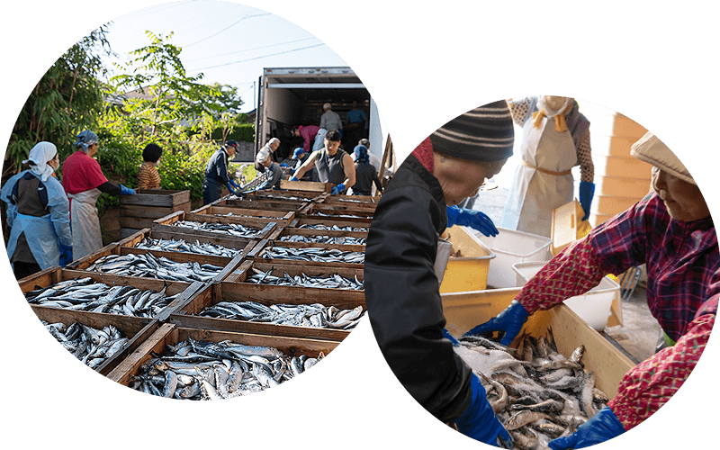 髙橋しょっつる屋の「しょっつる」は、塩漬けした魚(イワシ、サンマ、イサザアミ)を2年以上という長期間にわたり熟成発酵させ、大釜で煮てから濾過する昔ながらの製法で造られた伝統製法を現在に引き継いでいます。